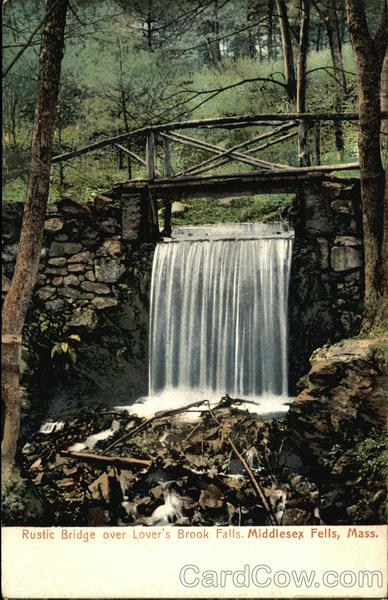Rustic Bridge over Lover's Brook Falls. Middlesex Fells, Mass.