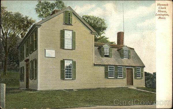 Front: 0.0 Hancock Clark House, Lexington, Mass. Back: 6744. The Metropolitan News Co., Boston, Mass. Manufacturers of Souvenir Postal Cards. Post Card * TWO CENTS
