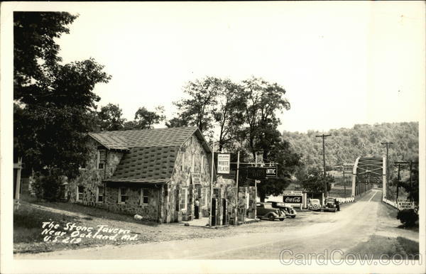 Front: The Stone Tavera US $219 DINNERS STEAK ATLANTIC WHITE FLASH perial Ice Cream OUCLESNE ANTIC BEER STONE TAVERN TRAILER CAMP Coca-Cola COTTAC & ROOMS FOR RENT Back: PONDENCE HERE
