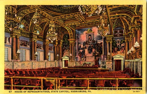 Front: 57 HOUSE OF REPRESENTATIVES, STATE CAPITOL, HARRISBURG, PA. 3A-H911 Back: DISTRIBUTED BY J. B. HOFFMAN & SON, HARRISBURG, PA.