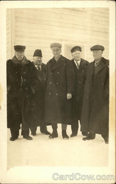 Portrait of Five Men in Coats and Snow