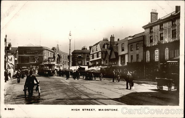 Front: S 5801 HAYNES ELECTRIC BREAD AINENS TURY F.E HIGH STREET, MAIDSTONE. OURGREAT SALE NOW ON LOVES SE & CR LAT Back: KINGSWAY REAL PHO10 SERIES VES KINGSWAY REAL PHOTO CARD, ONE PENNY FOREIGN 1d.