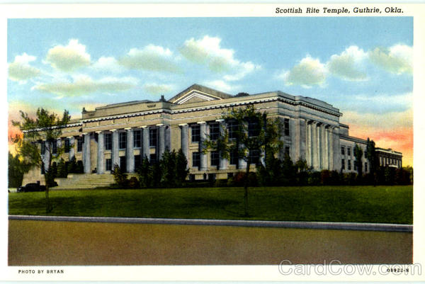 Front: Scottish Rite Temple, Guthrie, Okla. PHOTO BY BRYAN OB922-N Back: MID-CONTINENT NEWS CO., OKLAHOMA CITY, OKLA. CAPITOI Bida WAS ORIGIN OF ORLA.