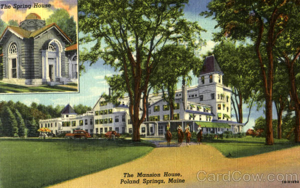 Front: The Spring House The Mansion House, Poland Springs, Maine 1B-H1694 Back: LEWISTON NEWS CO., LEWISTON, MAINE