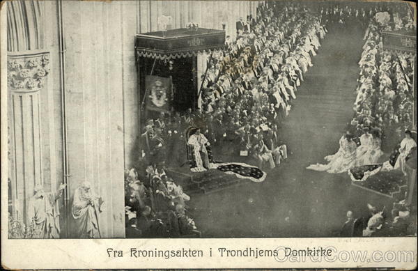 Front: Fra Kroningsakten i Trondhjems Domkirke Back: Eneberettiget Mittet & Co. Kristiania 1906 Royalty VERDENSPOSTFORENINGEN (UNION POSTALE UNIVERSELLE) Brevkort fra Norge (Norvège)