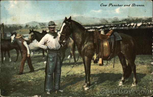 Front: Cow Puncher and Bronco. Back: 5th Divi Jihl youter and just Lze there is. Jaone am il Did you ime and na adorth I did thear day. Share romana. GA EN. 12 WY Misses. Vear + doneHall Morille cloua- Για