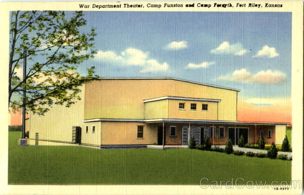 Front: War Department Theater, Camp Funston and Camp Peryth, Fert Riley, Kansas 1B-H977 Back: DISTRIBUTED BY P. K. NEWS COMPANY, JUNCTION CITY, KANSAS