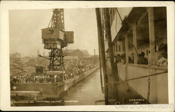 Front: DESPEDIDA DEL CRISTOBAL COLON TAMPICO. E.E.BARROS. 115. Back: Tampico Vera Cruz muy CORRESPONDENCIA DIRECCIÓN LUGAR PARA EL SELLO
