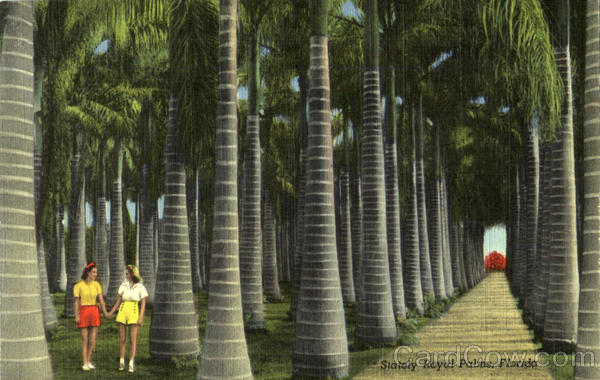 Front: Stately Royal Palms, Florida Back: The impressive view of a regular planta- tion of Royal Palms can be seen in McKee Jungle Gardens. 2B-H550 280 F-TROPICAL FLORIDA SERIES