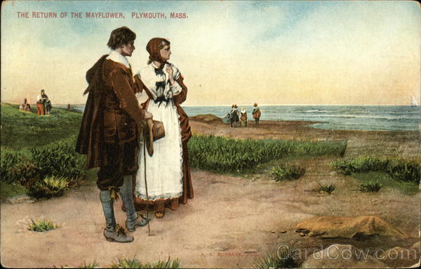 Front: THE RETURN OF THE MAYFLOWER, PLYMOUTH, MASS. A. 8. BURBANK. TUB. Back: Post Gara 1.50 IS. POS- SESSIONS Ic CAN A DIAN MEXICAN 2c