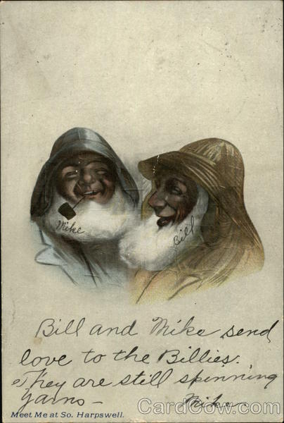 Front: Mike Bilſ Bill and Mike send love to the Billies. They are still spenning yarno Miker.. Meet Me at So. Harpswell. - Back: TEMP JU 26 SWAO NS NERIEN 1902 UNITED STATES OF PINE 4111 1907 1907 Fon FRANKLIN 1790 Thro. Mh. Reniston Temple Maine