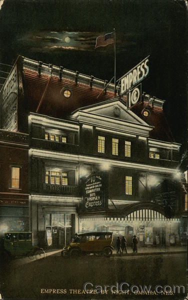 Front: ART 9-PEOPLE-9 Empress EMPRESS 10 NDOR AL EMPRESS THEATRE, BY NIGHT, OMAHA. NEB. Back: 4-37232 PHOTOCHROM ROST THIS SPACE FOR ADDRESS ONLY.