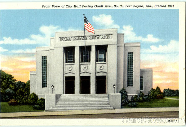 Front View of City Hall Facing Gault Ave., South, Fort Payne, Ala., Erected 1941 TFORT PAYNE CITY HALL 5B477-N