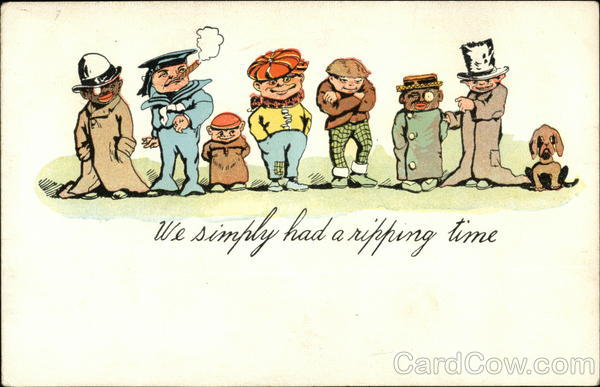 Front: 18 We simply had a ripping time Pave Back: 3045 LLUST. POST CARD CO., N. Y. 150 DOMES AND CANARA Two CENTS