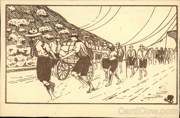 Boy Scout Troop Walking, Pulling Wagon of Supplies