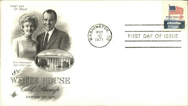 FIRST DAY OF ISSUE 8c AINGTON 10 3 1971 FIRST DAY OF ISSUE 37TH PRESIDENT AND FIRST LADY 8ยข WHITE HOUSE Coil Stamp Arf Craft SERIES OF 1971