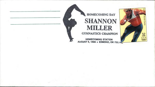HOMECOMING DAY SHANNON MILLER GYMNASTICS CHAMPION 32 HOMECOMING STATION AUGUST 6, 1996 * EDMOND, OK 73034 ఆలా Centennil Olympic Games