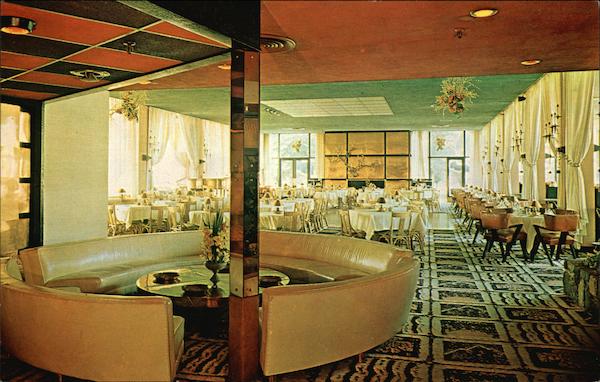 HARRISON HOT SPRINGS B. C., Canada "Copper Room" of the distinguished resort Har- rison Hot Springs Hotel for dining, dancing and music. Photo by J. C. Walker Walker Scenic Cards Co., 2916 A West 4th Ave., Vancouver 8, B.C., Canada 68735 HERE