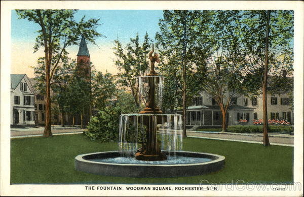 Front: THE FOUNTAIN, WOODMAN SQUARE, ROCHESTER, N. H. 114153 Back: UN VVED STATES 1732 WASHINGTON 1932 C. T. AMERICAN ART COLORED CHUS 20 Co
