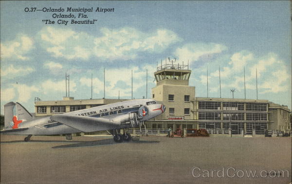 Front: 0.37-Orlando Municipal Airport Orlando, Fla. "The City Beautiful" ASTERN AIR LINES 有E百 zC-H938 Back: ORANGE NEWS CO., ORLANDO, FLA. PHOTO BY FLOWERS