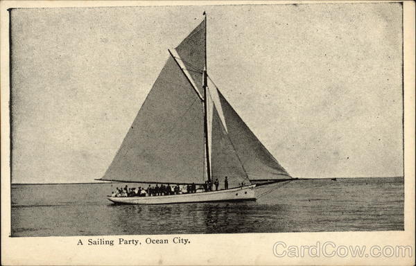 Front: A Sailing Party, Ocean City. Back: THIS SPACE MAY BE USED FOR COMMUNICATION. One cent stamp For Uni ed states Ca ada and Two cent stamp for all other countries.