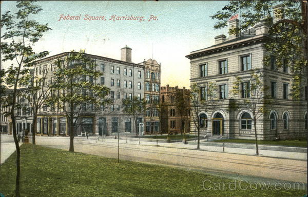 Front: Federal Square, Harrisburg, Pa. HA 3 33 33 3 30 33 3 **** Back: Pub. by Capital City News Agency, Harrisburg, Pa. Made in Germany. URGIPA Post Cars ост SU 2.P.M ANS STA Mr John H. Gaiden Williamstowr pa ONE CAN 854