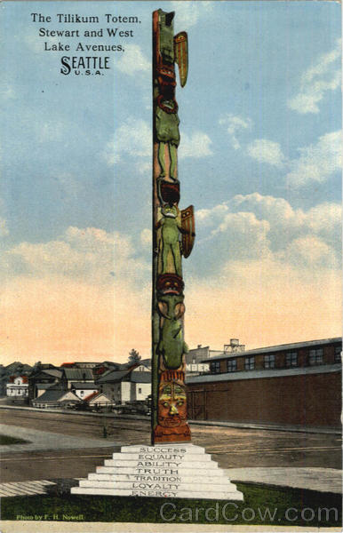 Front: The Tilikum Totem, Stewart and West Lake Avenues, SEATTLE Photo by F. H. Nowell. SUCCESS EQUALITY ABILITY TRUTH TRADITION LOYALTY ENERGY Back: 3035 PUBLISHED BY LOWMAN & HANFORD CO., SEATTLE, U. S. A. A 564 87 THIS SPACE FOR ADDRESS ONLY.