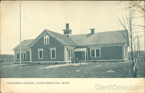 Front: 10 0 0 GRAMMAR SCHOOL, FARNUMSVILLE, MASS. Back: Published by A. P. Lundborg, Worcester, Mass. HERE.