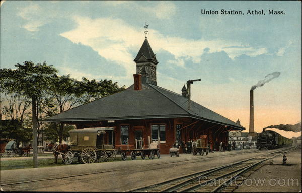 Front: Union Station, Athol, Mass. 000000000 Back: A-50584 C.T. PHOTOCHROM. ROST THIS SPACE FOR ADDRESS ONLY.
