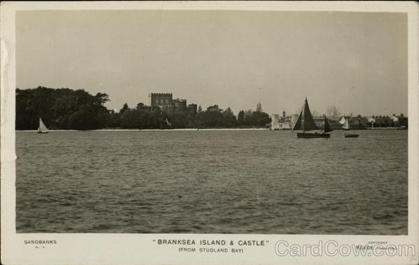 Front: "BRANKSEA ISLAND & CASTLE" 16 SANDBANKS 17 COPYRIGHT No. 4. READE, PARKSTONE (FROM STUDLAND BAY) Back: POST - CARD 129 view in front of Havenside looking to the West.