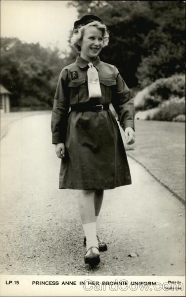 Front: LP.15 PRINCESS ANNE IN HER BROWNIE UNIFORM Photo by Studio Lisa Back: LANDO DE PUBLISHING CO., LTD., LADON Greetings THIS IS REAL PHOTOGRAPH BRITAIN GREAT IN کی مہ