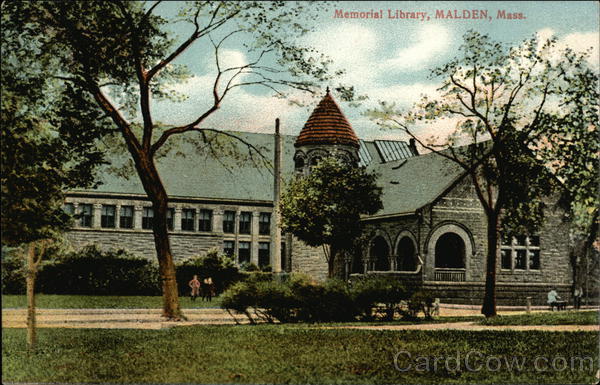 Front: Memorial Library, MALDEN, Mass. 磅 Back: Reichner Bros., Publishers, Boston, München, Leipzig. This Space below for Writing. 12 32 Place the Stamp Miss R. Lundesgrace Wakefield? Mass