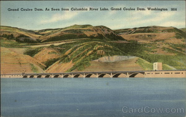 Grand Coulee Dam, As Seen from Columbia River Lake, Grand Coulee Dam, Washington 3016