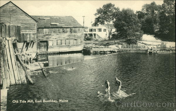 Front: Old Tide Mill, East Boothbay, Maine Back: This tide mill is still used for the cutting of lumber after a century of service. Double-Tone-THE MERIDEN GRAVURE Co., Meriden, Conn. No. M-28