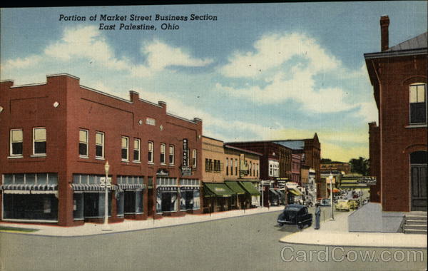 Front: Portion of Market Street Business Section East Palestine, Ohio RADIO NAS RESTAURANT 488 Back: E. P.-4—DISTRIBUTED BY MAHONING VALLEY DISTRIBUTING AGENCY, INC. YOUNGSTOWN, OHIO PHOTO BY LLOYD S. JONES 4- 99H JE