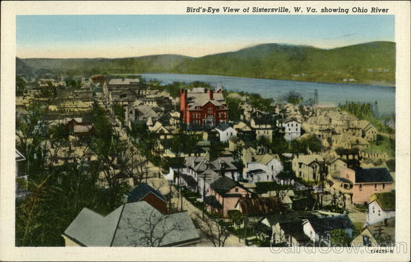 Front: Bird's-Eye View of Sistersville, W. Va. showing Ohio River 11 114256-N Back: DISTRIBUTED BY W. L. KNAPP, SISTERSVILLE, W. VA.