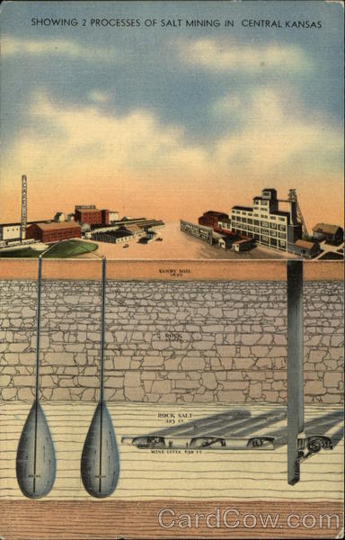 SHOWING 2 PROCESSES OF SALT MINING IN CENTRAL KANSAS
