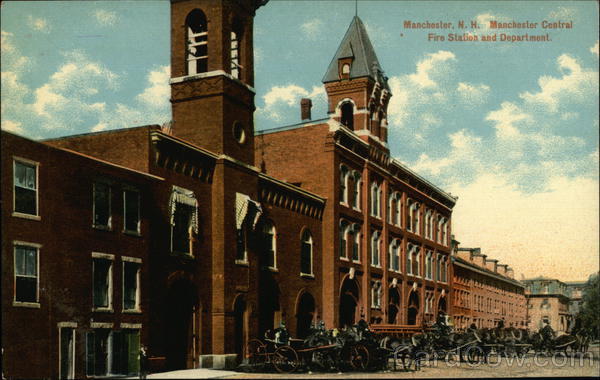 Front: Manchester, N. H. Manchester Central Fire Station and Department. Back: U. S, A. L-1672 THE HUGH C. LEIGHTON CO., MANUFACTURERS, PORTLAND, ME. QUALITY MESSAGE MAY BE WRITTEN ON THIS SIDE. and Island Possessions! Cuba, Canada and For Foreign.