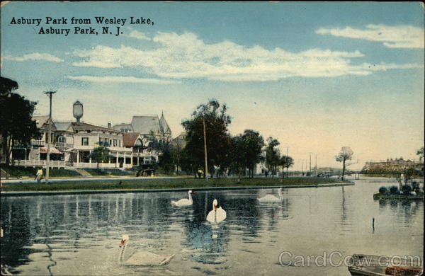 Front: Asbury Park from Wesley Lake, Asbury Park, N. J. Back: TMIS SPACE MAY BE USED FOR MESSAGE. MERE FOREIGN, TWO CENTS