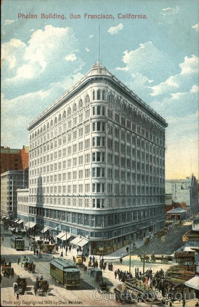 Front: Phelan Building, San Francisco, California. Photo only Copyrighted 1909 by Chas. Weidner. ANON Back: FIST No. V. 201. Neuman POST CARD Empany SS LOS ANGELES †808 Cuba Pananis 1c. 20