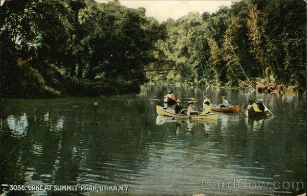 Front: 3056. LAKE AT SUMMIT PARK, UTIKA,N.Y. Back: Post Card 500 I many thanks I for the card I thought it fine Libbie Murphy 2.9. S. Hamiltonst Vatica 方出 Turs Amy Thompson 7 Addison It Materdown. ny