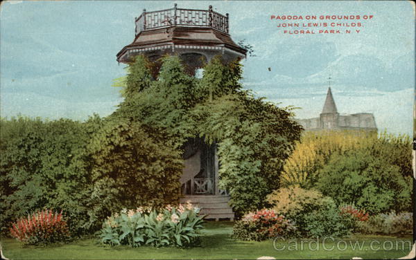 Front: 06 PAGODA ON GROUNDS OF JOHN LEWIS CHILDS FLORAL PARK. N. Y Back: WEE CARE QUAM Nassam 2. here