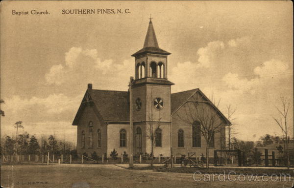 Front: Baptist Church. NL 4.L.HATES. SOUTHERN PINES, N. C. Î Back: DOMESTIC, 1c. FOREIGN, 2c. THE ALBERTYPE CO. BROOKLYN, N. Y.