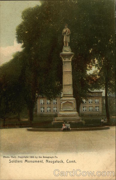 Front: =10 Photo. Only, Copyright 1905 by the Rotograph Co. Soldiers Monument, Naugatuck, Conn. Back: THE ROTOGRAPH CO.N.Y. CITY G 5292 400 TWO CENTS