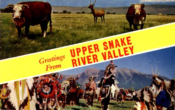 Front: Greetings UPPER SNAKE From RIVER VALLEY Back: Color Gelard IN Scenic Art Post Office Box 1373. Richmond, California C8053G