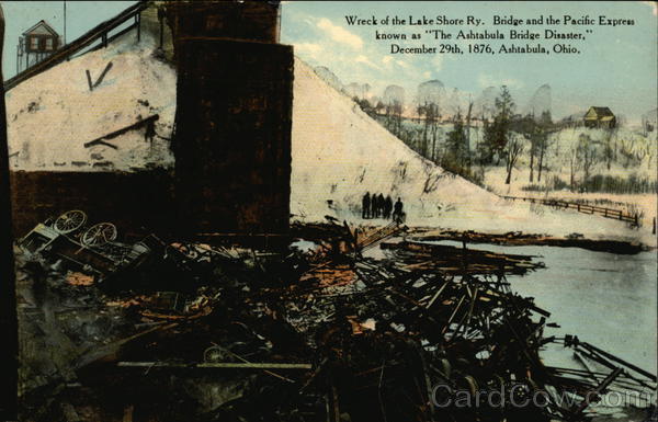 Front: Wreck of the Lake Shore Ry. Bridge and the Pacific Express known as "The Ashtabula Bridge Disaster," December 29th, 1876, Ashtabula, Ohio. ANM 16 4 Back: PUBLISHED BY F. M. KIRBY & CO. $200 A-3435 THIS SPACE FOR ADDRESS ONLY.
