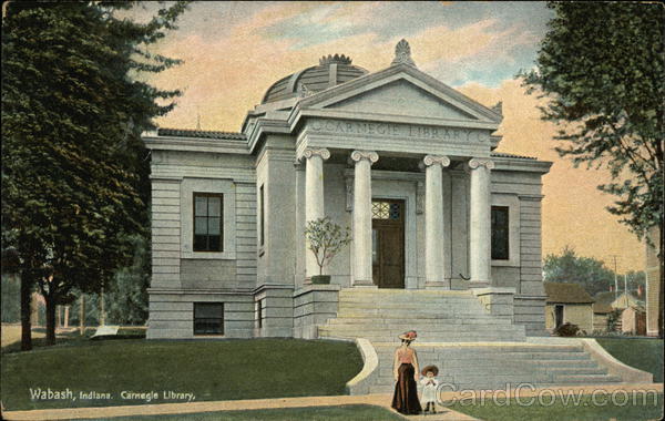 Front: Wabash, Indiana. Carnegle Library. C CARNEGIE LIBRARY O Back: THE HUGH C. LEIGHTON CO., MANUFACTURERS, PORTLAND, ME., U.S.A. 25310 MESSAGE MAY BE WRITTEN ON THIS SIDE. 4- and Island Possessions Cuba, Canada and For Foreign.