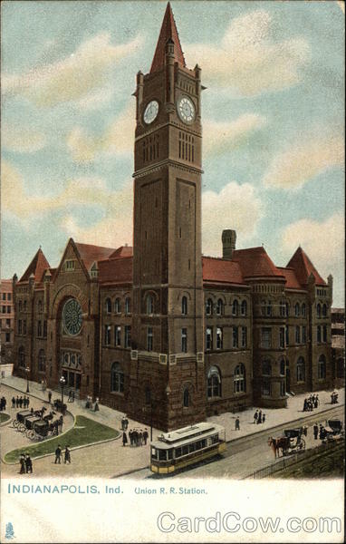 Front: LLL 10 INDIANAPOLIS, Ind. Union R. R. Station. 10 11 10 Back: Raphael Tuck & Sons' Post Card Series No. 2122 "Indianapolis. Ind." ART PUBLISHERS TO THEIR MAJESTIES THE KING AND QUEEN, STRES ARTISTIC 3