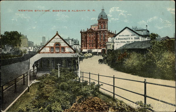 Front: NEWTON STATION, BOSTON & ALBANY R. R. 5. ESTABLISHED 1890, A.BRACKETT & SON. COAL, WOOD, HAY AND CRAIN Back: 1185 PUBLISHED BY THE UNION NEWS COMPANY NEW YORK. Registered 1916 RR-1943 ADDRESS ONLY