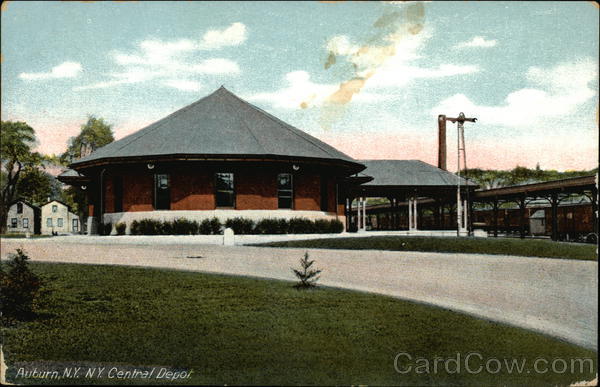 Front: Auburn, N.Y. NY Central Depor S Back: THE HUGH C. LEIGHTON CO., MANUFACTURERS, PORTLAND, ME., U.S.A. MADE IN GERMANY. 8929 QUALITY MESSAGE MAY BE WRITTEN ON THIS SIDE. Place the Stamo Here and Island Possessions Cuba, Canada and For Foreign.